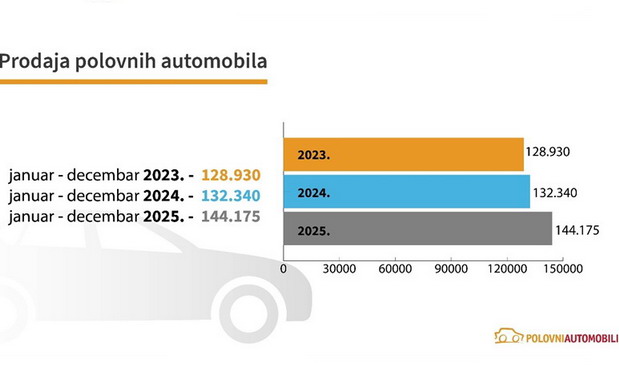 Prodaja polovnih automobila iz uvoza u Srbiji tokom 2025. godine porasla je za gotovo 9% u odnosu na 2024. godinu, dok su prosečne cene polovnjaka bile u proseku 5% više nego godinu dana ranije. Uprkos rastu cena, interesovanje kupaca nije oslabilo, a tržište polovnih vozila beleži jednu od najdinamičnijih godina u poslednjem periodu, pokazuje tradicionalna godišnja analiza sajta Polovni automobili.Istraživanje je obuhvatilo prodajne rezultate polovnih automobila prvi put registrovanih u našoj zemlji tokom 2025. godine, prikupljene u saradnji sa CUBE timom, kretanje prosečnih cena polovnih automobila oglašenih na sajtu, kao i interesovanje kupaca kada je reč o modelima, brendovima i vrstama pogonskog goriva.Tržište polovnjaka...