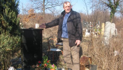 Slobodan Bugarić kraj oštećenog ćerkinog spomenika