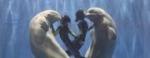 Dva bela kita su uz pomoć instruktorki tokom šoua u akvarijumu u Harbinu u Kini napravili figuru srca za nagradu su dobili poljubac.