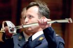 Lice koje prima sablju podiže ruke savijajući ih u laktovima i prihvata nožnicu, dlanovima okrenutim nagore, levom rukom između grivne i rukohvata a desnom rukom oko 10 centimetara od vrha nožnice. Lice koje predaje sablju sklanja ruke s nožnice, a lice koje prima sablju podiže je prema glavi, savijajući ruke u laktovima, >> Pročitaj celu vest na sajtu Politika << prinosi je ustima i ljubi, a zatim zauzima stav „mirno” sa sabljom u nožnici.