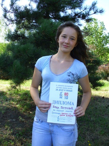 Na nedavno održanom Festivalu zabavne muzike za decu i mlade „Tin“ u Donjem Milanovcu Boranka Neda Petrovic (14), učenica osmog razreda OŠ „Dušan Radović“, proglašena je za najboljeg solistu u izvođenju kompozicije “Zaspao si srećan“. Anđeoskim glasom i interpretacijom Neda je među 24 učesnika iz Crne Gore,Makedonije i Srbije publiku i žiri ostavila bez daha i osvojila tri prve nagrade: za najboljeg solistu, kompoziciju i aranžman i gran pri za najbolje ostvarenje na festivalu, piše današnji Blic.