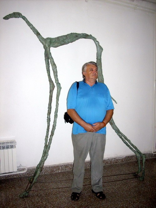 Fotos gore: Miroslav Radulović, novinar ispred skulpture Đorđa Arnauta