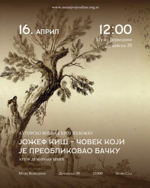Ауторско вођење кроз изложбу ЈОЖЕФ КИШ: ЧОВЕК КОЈИ ЈЕ ПРЕОБЛИКОВАО БАЧКУ ауторке др Мирјане Ђекић биће одржано у среду, 15. априла у 18 часова и у четвртак, 16. априла у 12 часова у Музеју.