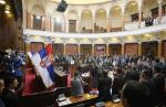 Svečanost je nastavljena i u Skupštinskoj sali. Ubuduće svako redovno zasedanje počinjaće intoniranjem himne. Na nove počasti poslanici različitno gledaju.