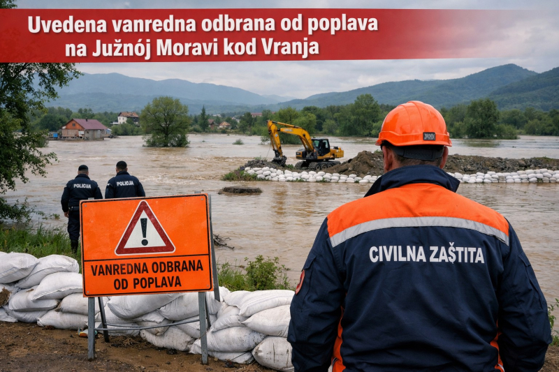 U saopštenju preduzeća Srbijavode navodi se da je vanredna odbrana od poplava uvedena dana 15. 2. 2026. na vodnoj jedinici "Južna Morava – Vranje", u sektoru M.1.1, deonica M.1.1.6, u slivu reke Južne Morave, usled naglog porasta vodostaja reke Moravica, iznad nožice levoobalnog i desnoobalnog nasipa.