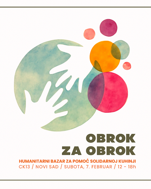 Humanitarni bazar „Obrok za obrok“ za podršku Solidarnoj kuhinji biće održan u subotu, 7. februara u Omladinskom centru CK13. Događaj će trajati od 12 do 18...