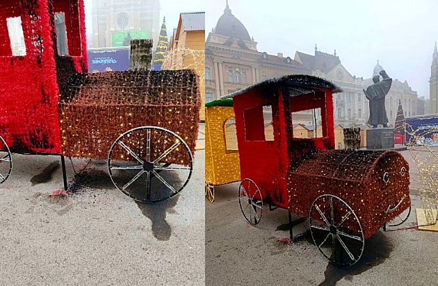 Zapaljen novogodišnji vozić na Trgu slobode