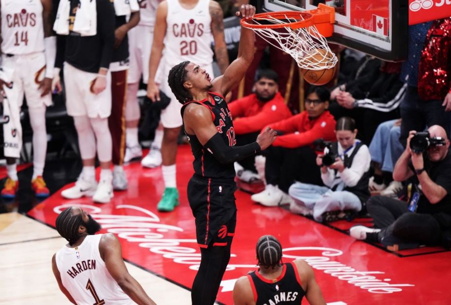 Кошаркаши Торонта победили су данас на свом терену Кливленд резултатом 126:104 у трећем мечу плеј-офа четвртфинала Источне конференције НБА лиге и смањили на 2:1 у серији. Фото: Танјуг/Nathan Denette/The Canadian Press via AP Најефикаснији у тиму Торонта, који са клупе води српски тренер Дарко Рајаковић, били су Ар Џеј Берет и Скоти Барнс са по 33 постигнута поена. Колин Мареј Бојлс је убацио 22 поена, док је Џејмисон Бетл забележио 14....
