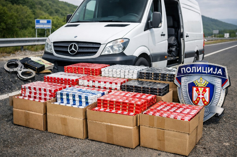 Policija je, na auto-putu kod Vranja, zaustavila kombi marke „mercedes“ kojim je upravljao osumnjičeni i u njemu pronašla 3001 paklicu cigareta, bez prateće dokumentacije.