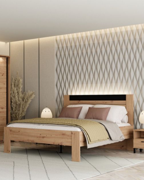 Kao prostor rezervisan za mir i relaksaciju, spavaća soba zahteva pažljivo planiran enterijer. Nameštaj koji biramo treba da bude više od estetskog dodatka – on treba da odgovori i na svakodnevne potrebe. Kombinacija modernog dizajna i funkcionalnosti doprinosi stvaranju prostora koji je istovremeno uredan, udoban i vizuelno privlačan. Kolekcija BITINIA – estetika prilagođena savremenom životu Spavaća soba BITINIA predstavlja savremeni spoj estetike i funkcionalnosti, u kojem kontrast između dekora artisan hrasta i crnog drvo dekora stvara upečatljiv vizuelni efekat. Toplinu i prijatnu atmosferu prostoru donosi prirodni dekor artisan hrasta, dok crni drvo dekor dodatno naglašava moderan karakter kolekcije. Funkcionalnost svakog...