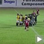 Brazilski policajci, pod punom ratnom opremom i opremljeni suzavcem zaveli red pošto jedan od igrača nižerazrednog Genusa nije žele da napusti teren kad mu je sudija pokazao crveni karton.